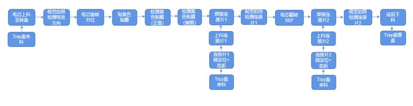 產品特點 該設備為紐扣電池組裝焊接系統,主要包括焊接機構、轉盤機構、貼膜機構、翻轉機構、上/下料機構、Tray盤機構、視覺檢測等組件。