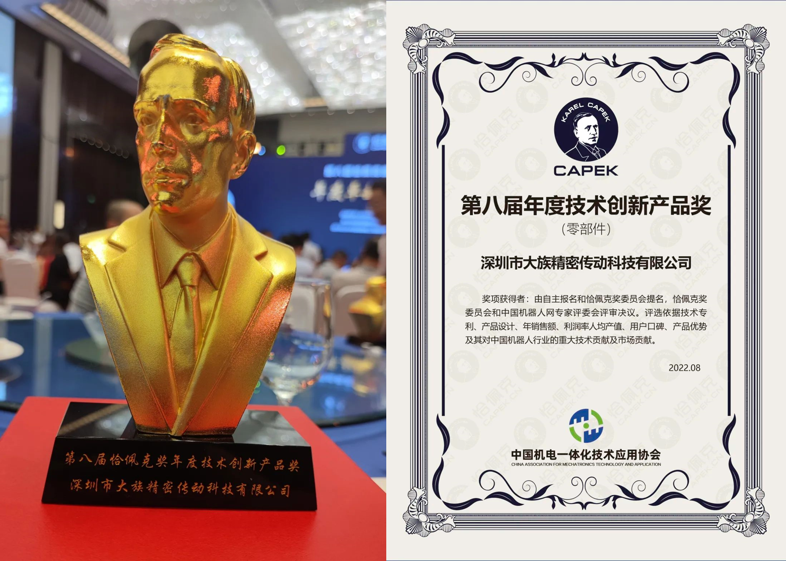 大族諧波傳動作為國內專注于精密諧波減速器研發生產的企業,憑借自主研發和創新概念,產品技術獲得重大突破,榮獲恰佩克“第八屆年度技術創新產品獎”。