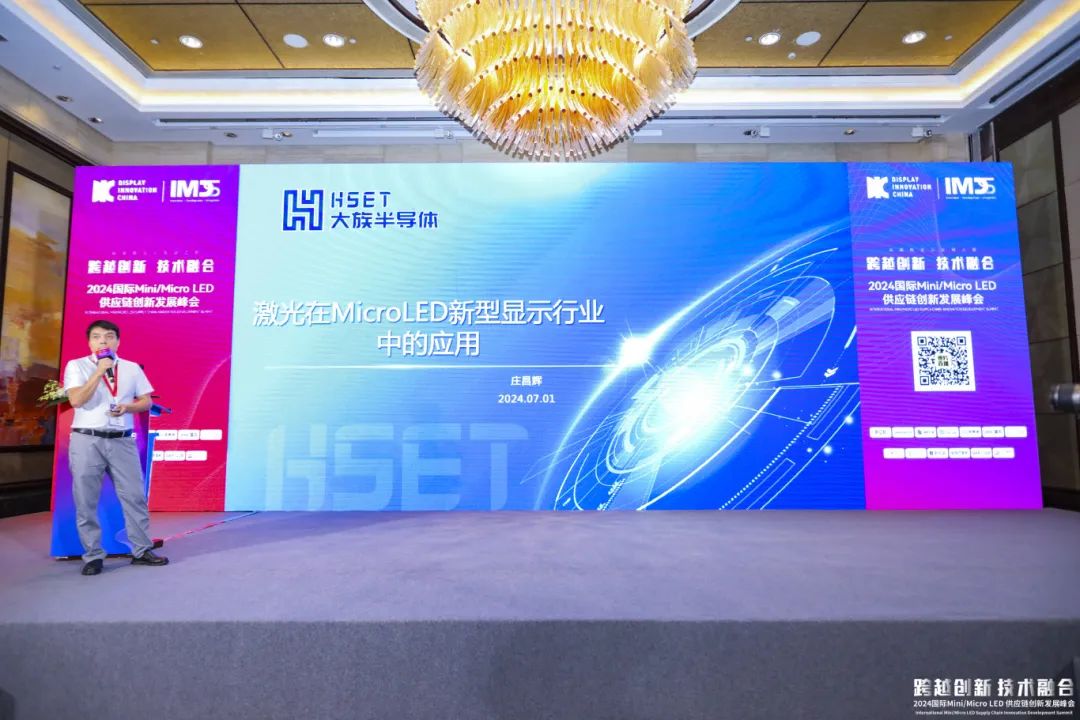 本次盛會邀請了來自各界的頂尖技術(shù)專家及領(lǐng)軍企業(yè)代表展開深度對話。大族半導(dǎo)體研發(fā)總監(jiān)莊昌輝先生受邀發(fā)表了 “Micro LED顯示研發(fā)進度及激光巨量轉(zhuǎn)移技術(shù)”的主題演講。莊昌輝先生憑借深厚的行業(yè)技術(shù)經(jīng)驗與前瞻視角,展示了當前Micro LED顯示技術(shù)研發(fā)的最新成果,更以獨到的見解深刻剖析了該技術(shù)發(fā)展的內(nèi)在邏輯與未來走向,與眾多行家精英共同展望了Mini/Micro LED顯示技術(shù)未來發(fā)展的無限可能。