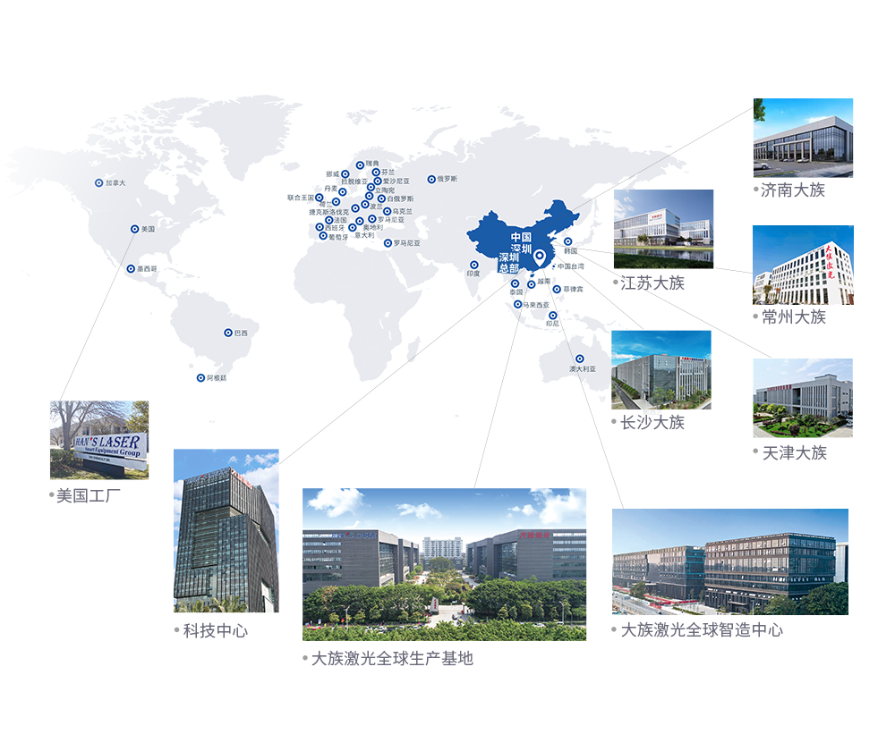 大族激光智能裝備集團作為全球具綜合性、專業(yè)性、先進性的激光智能裝備服務商,致力于中高功率激光切割、切管、折彎機及自動化生產(chǎn)線的研發(fā)、制造、銷售與服務,憑借深圳、張家港、常州、天津、長沙、蘇州、濟南及美國得克薩斯州等海內(nèi)外生產(chǎn)基地和備品備件庫的堅實基礎,構建了輻射華南、華中、華東、環(huán)渤海、北美等海內(nèi)外運營總部與七大銷售片區(qū),業(yè)務覆蓋全球超過100個國家和地區(qū),國內(nèi)外180余個辦事處,為全球3萬個規(guī)模以上工業(yè)客戶提供高品質產(chǎn)品與優(yōu)質高效服務。