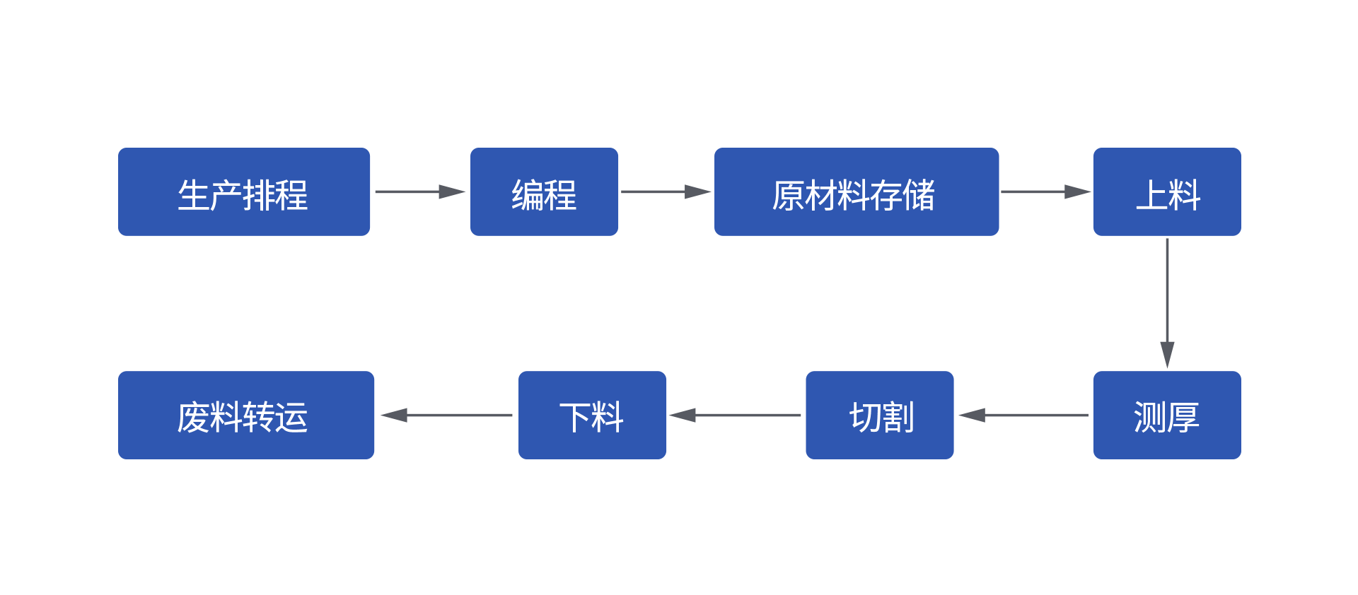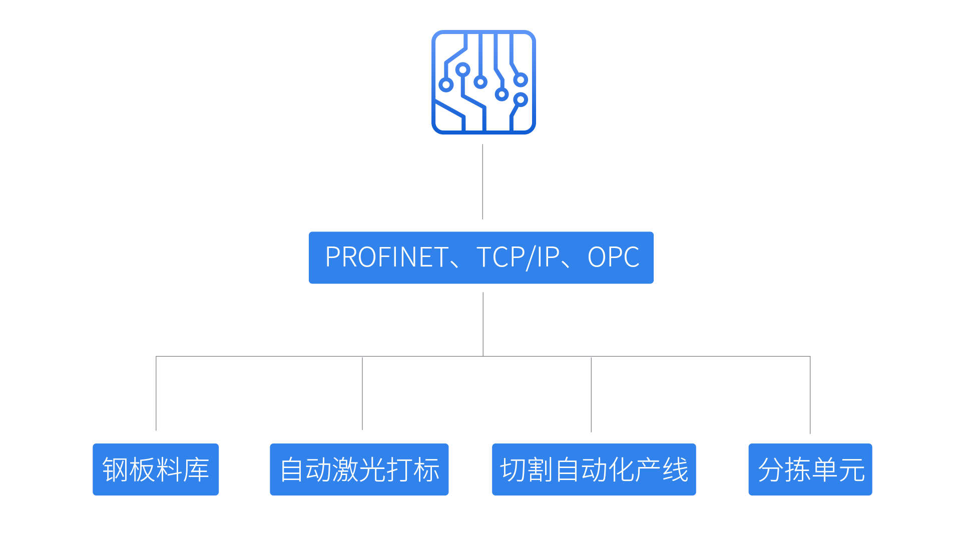 1、實現從生產排程、排版編程到原材料存儲、原材料上料、切割、切割后工件及廢料的轉運,實現自動化和按計劃加工;
