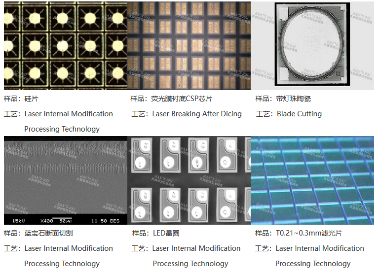 激光表切(陶瓷電感、晶圓全切、晶圓背切) | 激光改質切割(濾光片、鉭酸鋰、碳化硅、硅) |